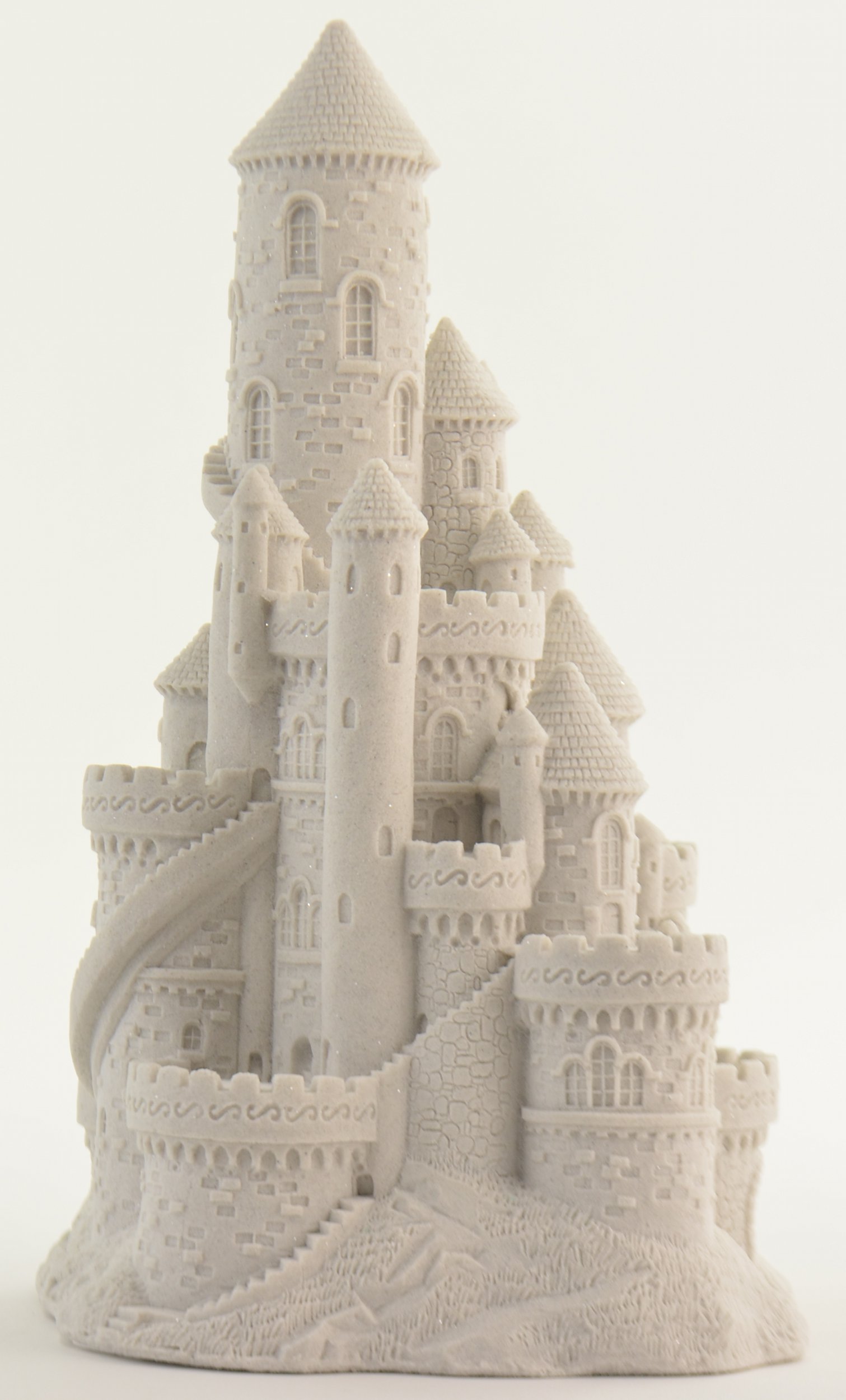 SAND-DECO sand castle figurines are not only beautiful but are also made from real sand. Tall standing towers, turret, court yards, and winding stair cases make up this gorgeous scene. The detail on this large 11" tall white sand castle figurine is amazing, from the windows down to the individual bricks, you get the feeling you are looking at a real castle. You are sure to have memories of the beach rushing back to you each time you glance at this realistic sand castle.